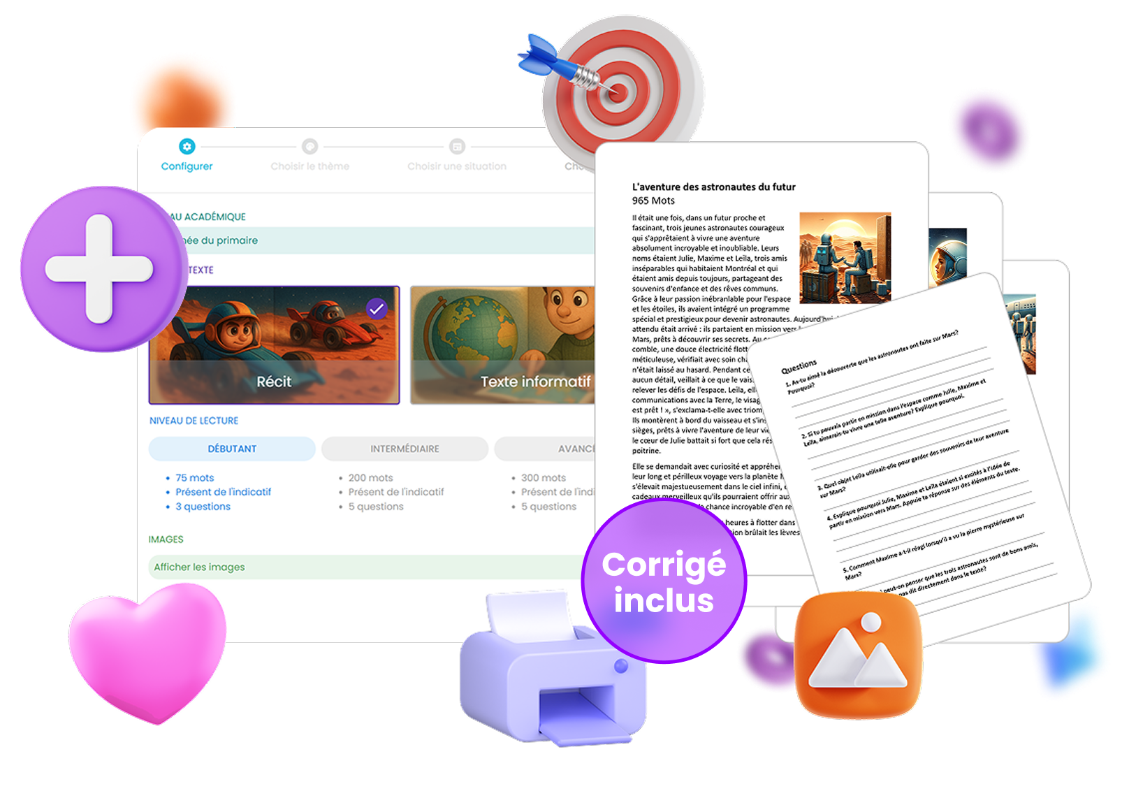 Générez des situations de lecture sur les sujets que vous désirez! Obtenez le texte, les questions et le corrigé directement dans Oplan!